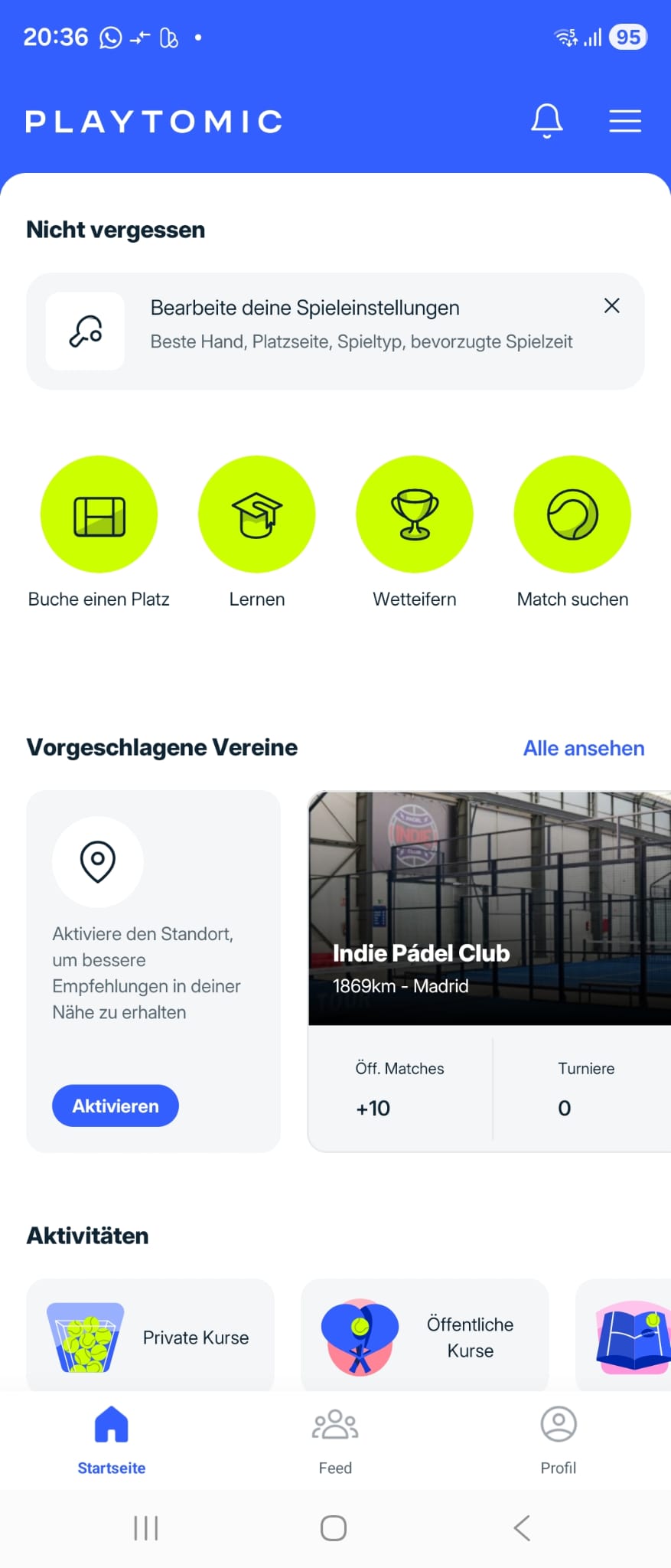 Email Adresse, Passwort sind notwendig. Bitte auch eine Telefonnummer angeben. Nach der Registrierung den Standort bitte aktivieren um Padelstein zu sehen.
