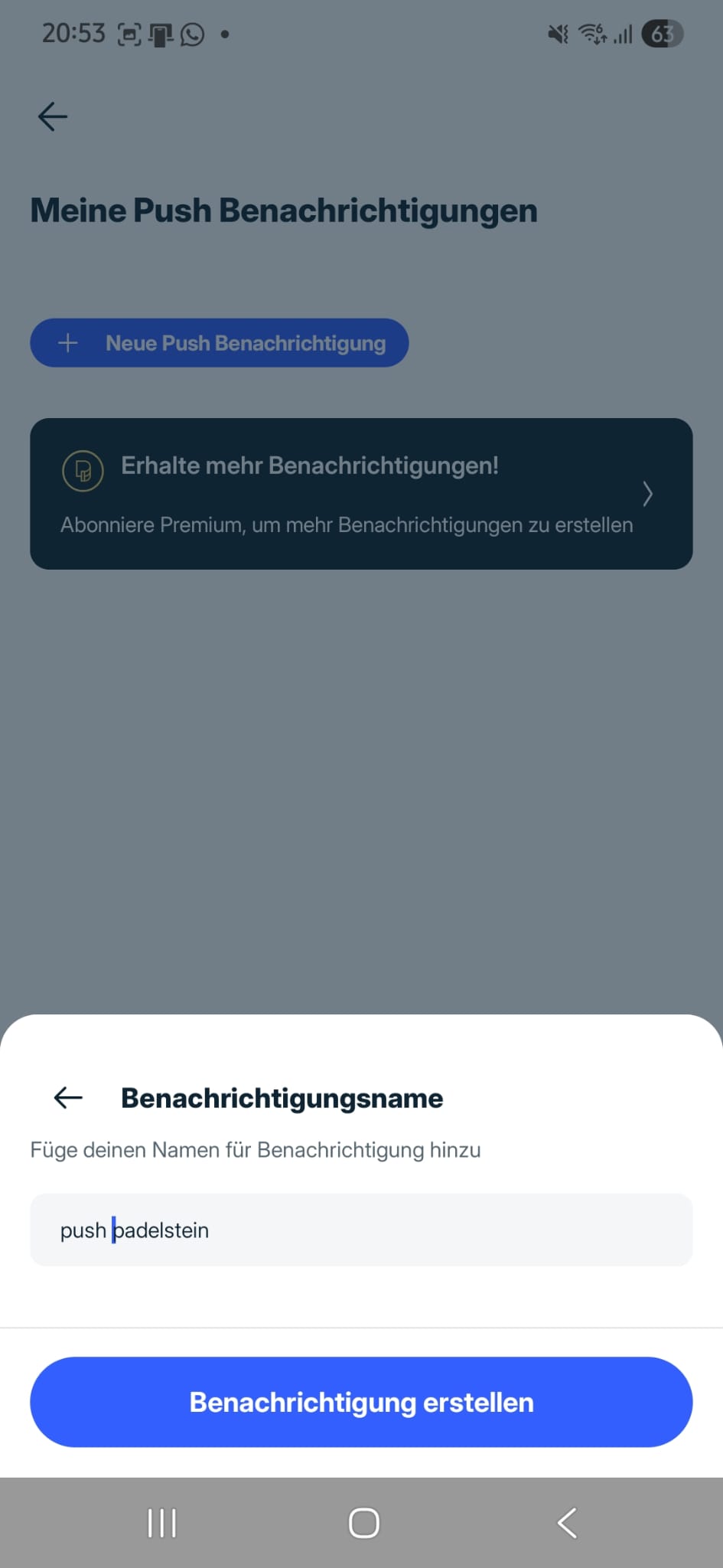 - Benachrichtigung speichern - z.B. als "Push Padelstein"
