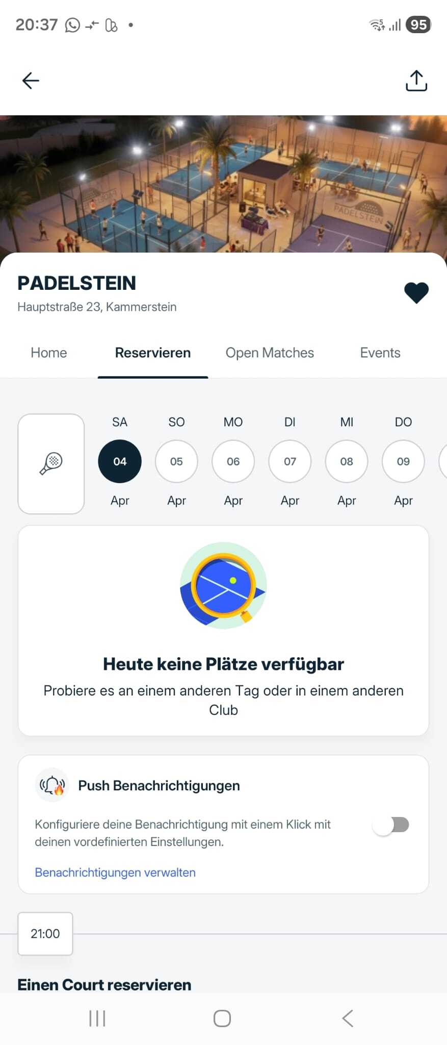 Um Padelstein zu sehen und zu standardisieren muss der Standort aktiv sein oder manuell "Kammerstein" gesucht werden. Anschließend "PADELSTEIN" auswählen und auf das "Herz" klicken um uns in der Übersicht dauerhaft sehen zu können.