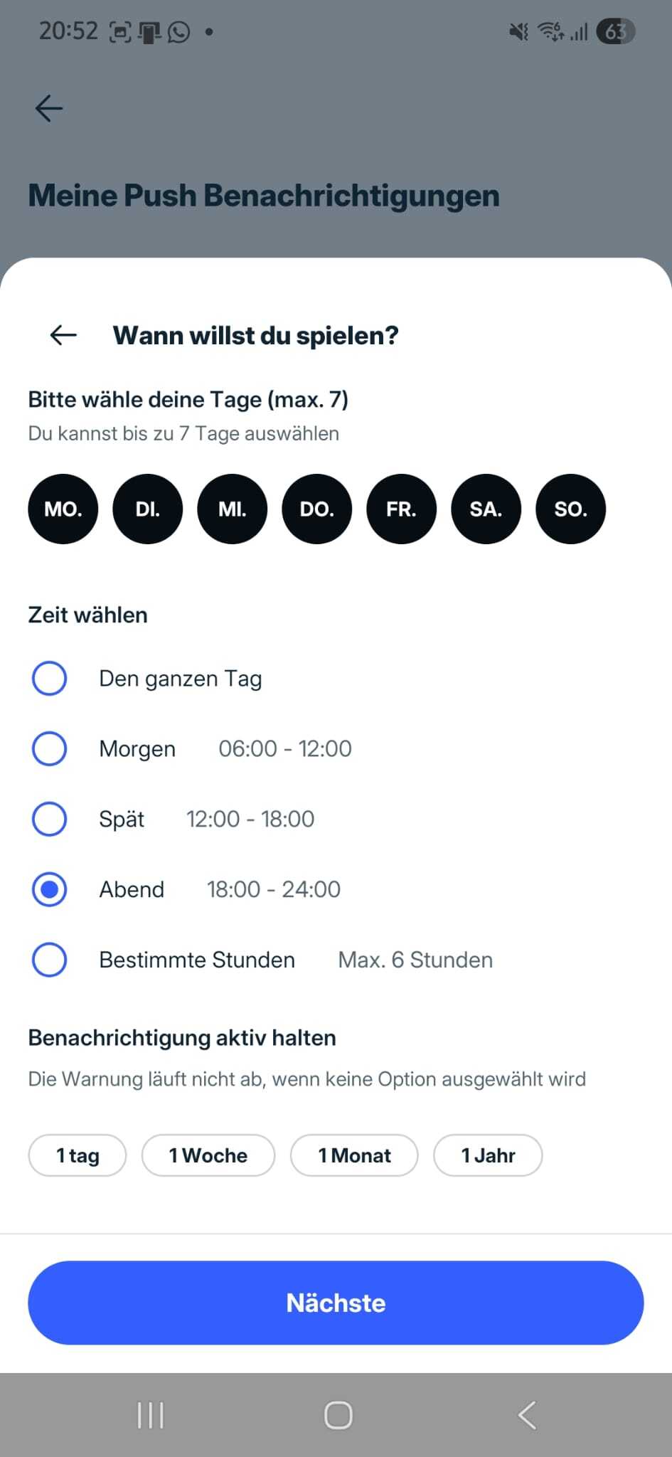 - Deine Lieblingszeiten auswählen (wann hast du Zeit)