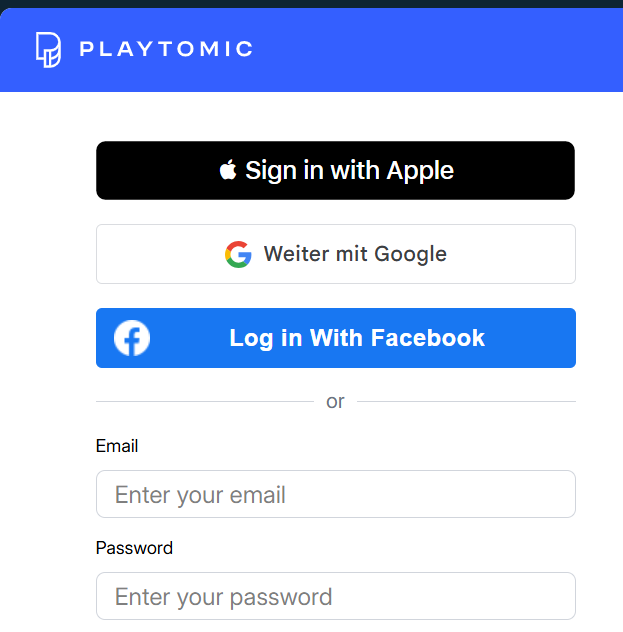 Email Adresse, Passwort sind notwendig. Bitte auch eine Telefonnummer angeben. Nach der Registrierung den Standort bitte aktivieren um Padelstein zu sehen.